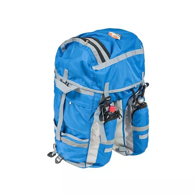 Это абсолютно новая сумка-штаны на багажник, которая предназначена для длительных путешествий и сложных экспедиционных походов. Конструкция и форма позволили снизить центр тяжести, что значительно увеличило устойчивость и степень защищенности велосипеда от опрокидывания. Объем может варьироваться в пределах 30 литров, благодаря системе «плавающего клапана» и универсальному тубусу, а так же возможности дополнительной комплектации накладным карманом-рюкзаком объемом 15 литров (кр011.015).
