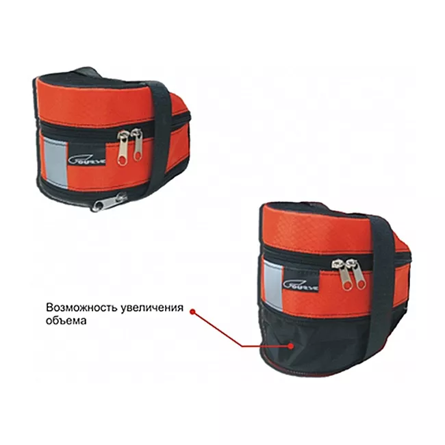 Комплектуется: светоотражающей полосой, пластиковым вкладышем, лентой "липучкой" для крепления к подседельной трубе, стропой для крепления к седлу, застёжкой молнией (2 замка), застёжкой молнией внизу для использования доп.объёма.