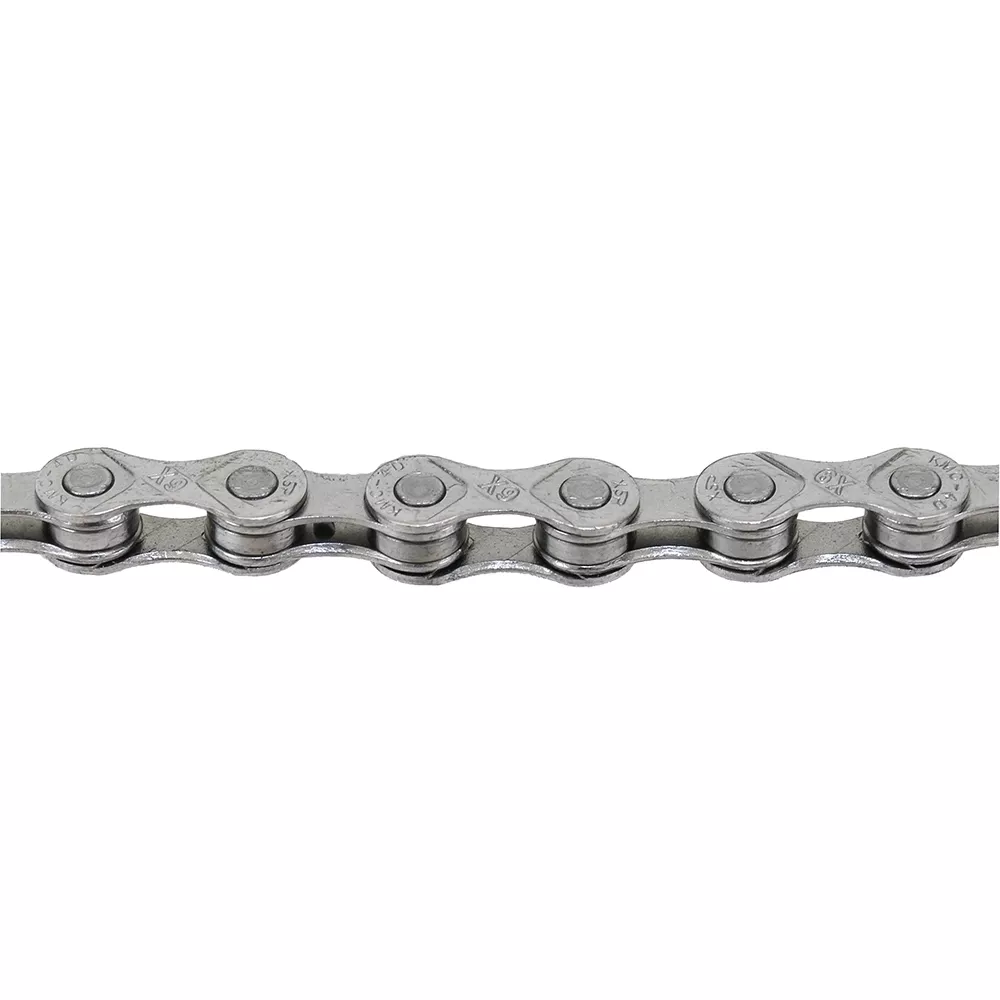 Велосипедная цепь от известного производителя KMC. Предназначена для использования на велосипедах с девятискоростной трансмиссией - МТБ, горные, кросс-кантри, туристические и шоссейные велосипеды. Изготовлена из крепкой закаленной стали, с термической обработкой и никелевым покрытием. Модель X9 однорядная роликовая цепь на 116 звеньев с длиной звена 1/2" и шириной 11/128", которая совместима с 9-ти скоростной системой переключения передач производителей SRAM, Shimano и Campagnolo. Цепь X9 имеет фаски на внутренних и внешних пластинах, что делает переключение передач более точным и надежным. Также стоит отметить совсем небольшой вес и специальную геометрию пина, которая увеличивает срок службы цепи и упрощает её снятие. Благодаря качественным материалам и современным технологиям велоцепи фабрики КМС имеют высокую надежность и длительный срок эксплуатации.