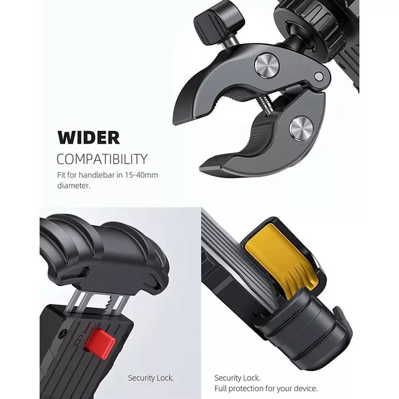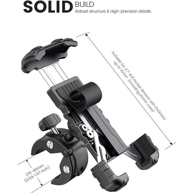 Держатель BP05 подходит для велосипедов с диаметром руля от 0.59 до 1.57" (15 - 40мм).