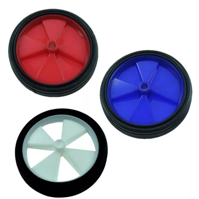 Пластиковые колёса с резиновыми накладками для детских велосипедов с приставными страховочными колёсами.