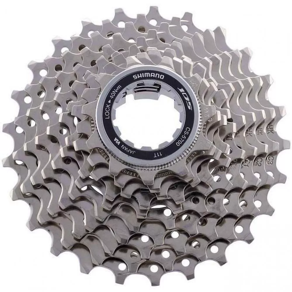 Кассета Shimano 105, 5700 на 10 скоростей обеспечивает плавное и мягкое переключение благодаря технологии HYPERGLIDE. Раскладка по зубьям 11-28. Вес 265 грамм.