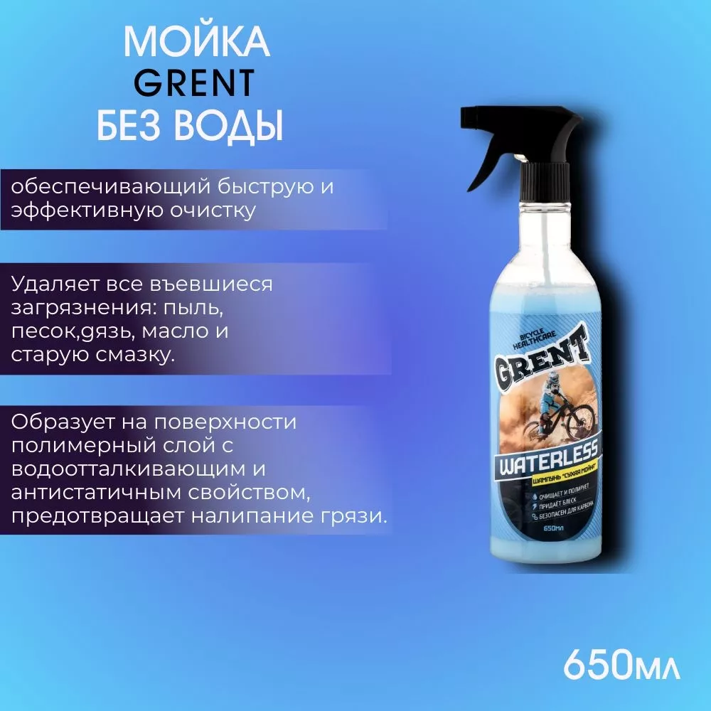 Биоразлагаемый шампунь GRENT объемом 650 мл - эффективный вариант для чистки и мойки вело и мототехники. С легкостью справляется с различными видами грязи, остатками смазки, жирными пятнами и прочии виды велозагряднений. Средство не оставляет разводов и следов, легко смывается водой. Особая формула безопасна для кожи не вредит пластику, резиновым элементам и разного рода эмалированным и окрашенным поверхностям.