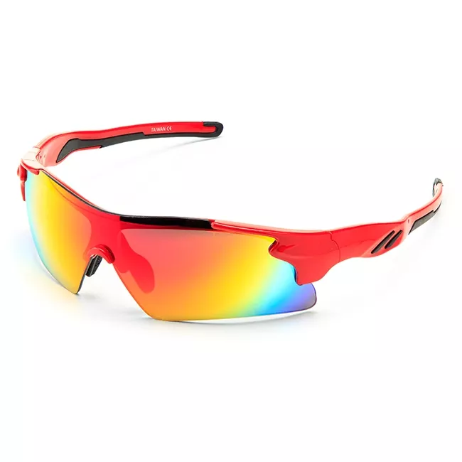 Оправа и линзы изготовлены из поликарбоната. Это чрезвычайно твёрдый, лёгкий и очень прочный материал. Цвет красный глянец.