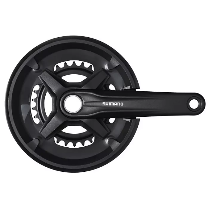 Система Shimano MT 210 - две звезды спереди 46 и 30 зубьев. Длина шатуна 175 мм. С палстиковой защитой на большей звезде.