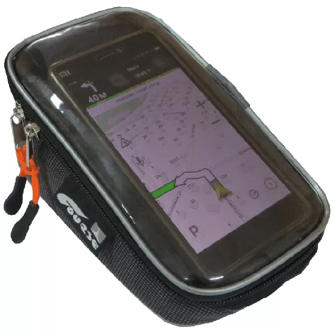 Комплектуется: верхняя часть из прозрачной плёнки PVC с жёстким кантом по периметру, боковой застёжкой-молнией (2 замка с пулерами), внутренней системой для установки и крепления смартфона (мягкий кармашек из ППУ 5мм обшитый тканью, с клапаном на липучке), лентой "липучкой" для крепления к раме и стойке руля (3 шт.), пластиковым вкладышем, системой для крепления ключей.
