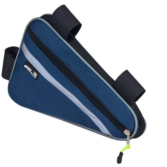 Комплект: светоотражающая полоса, лента "липучка" для крепления сумки к раме (3шт), боковая молния (замок с пулером), жёсткий кант по периметру с двух сторон, система для крепления ключей.
