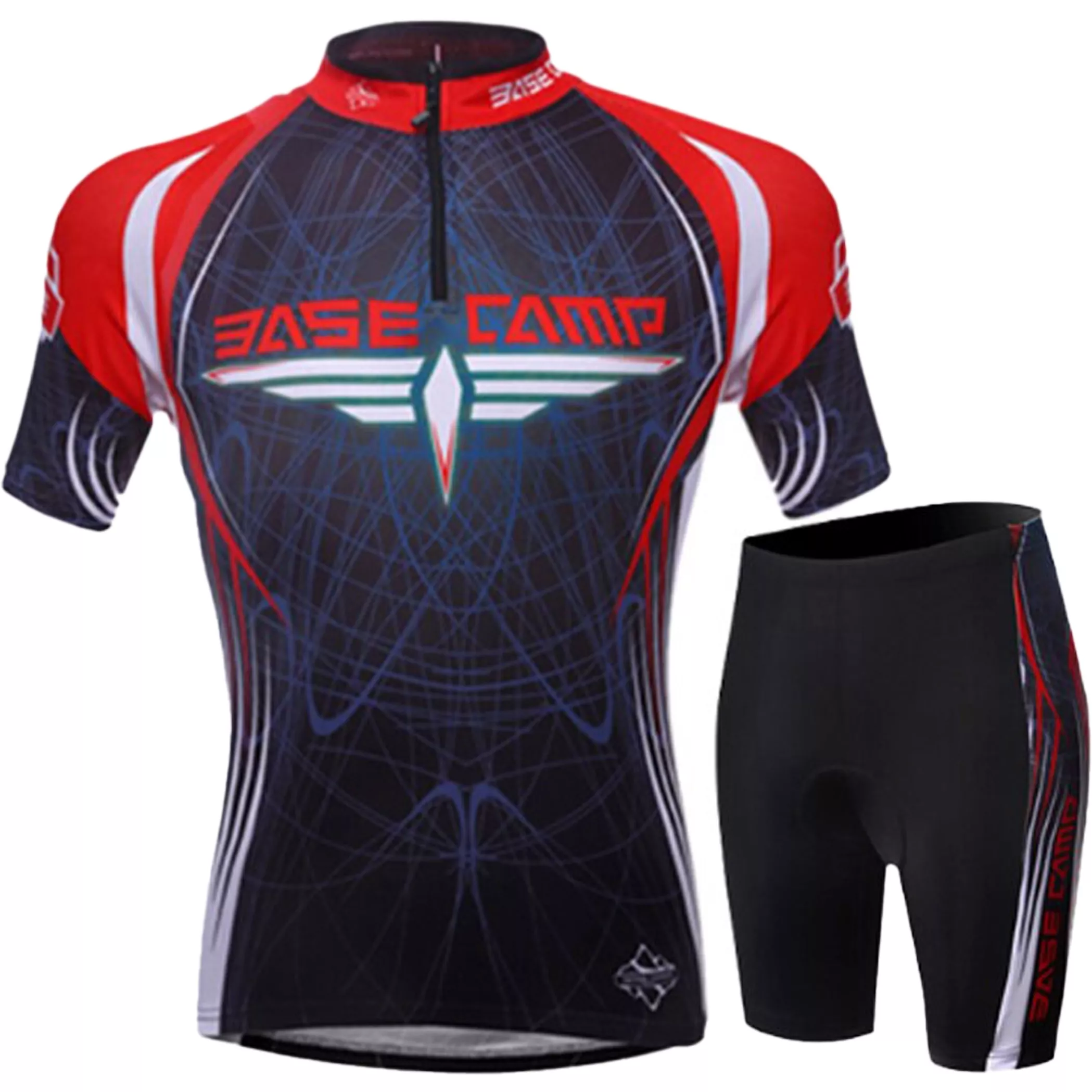 Комплект велосипедной формы с коротким рукавом BASE CAMP шорты, майка, цвет черно-сине-красный, размер L.