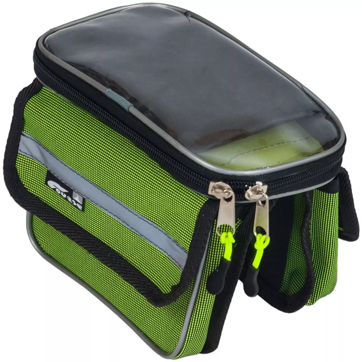 Отличная сумка на раму со съемным чехлом для телефона и с боковыми свисающими отсеками для мелочей. Крепится на раму и фиксируется за стойку руля при помощи 4-х лент "липучек".