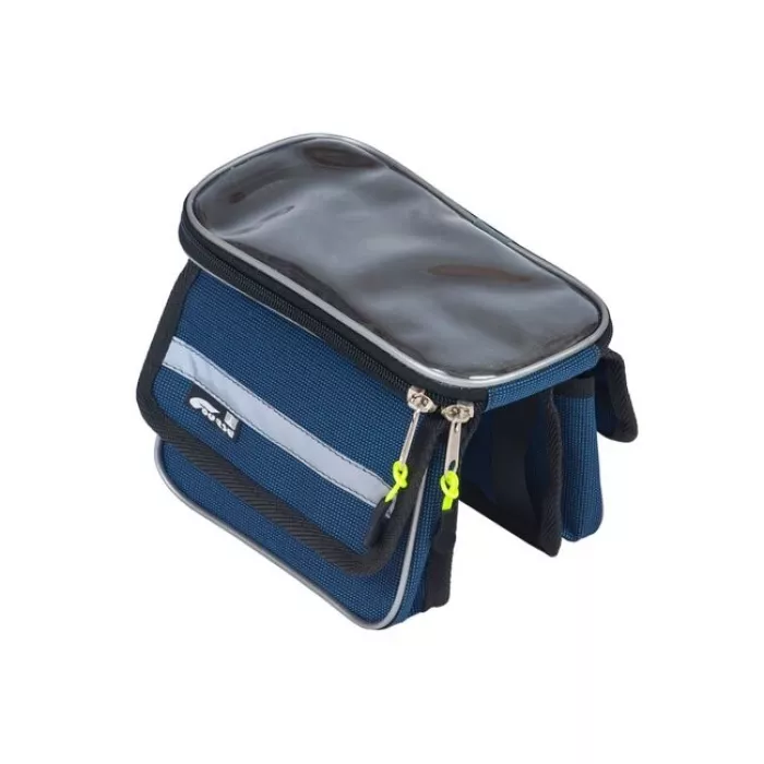 Отличная сумка на раму со съемным чехлом для телефона и с боковыми свисающими отсеками для мелочей. Крепится на раму и фиксируется за рулевую колонку при помощи 4-х "липучек".