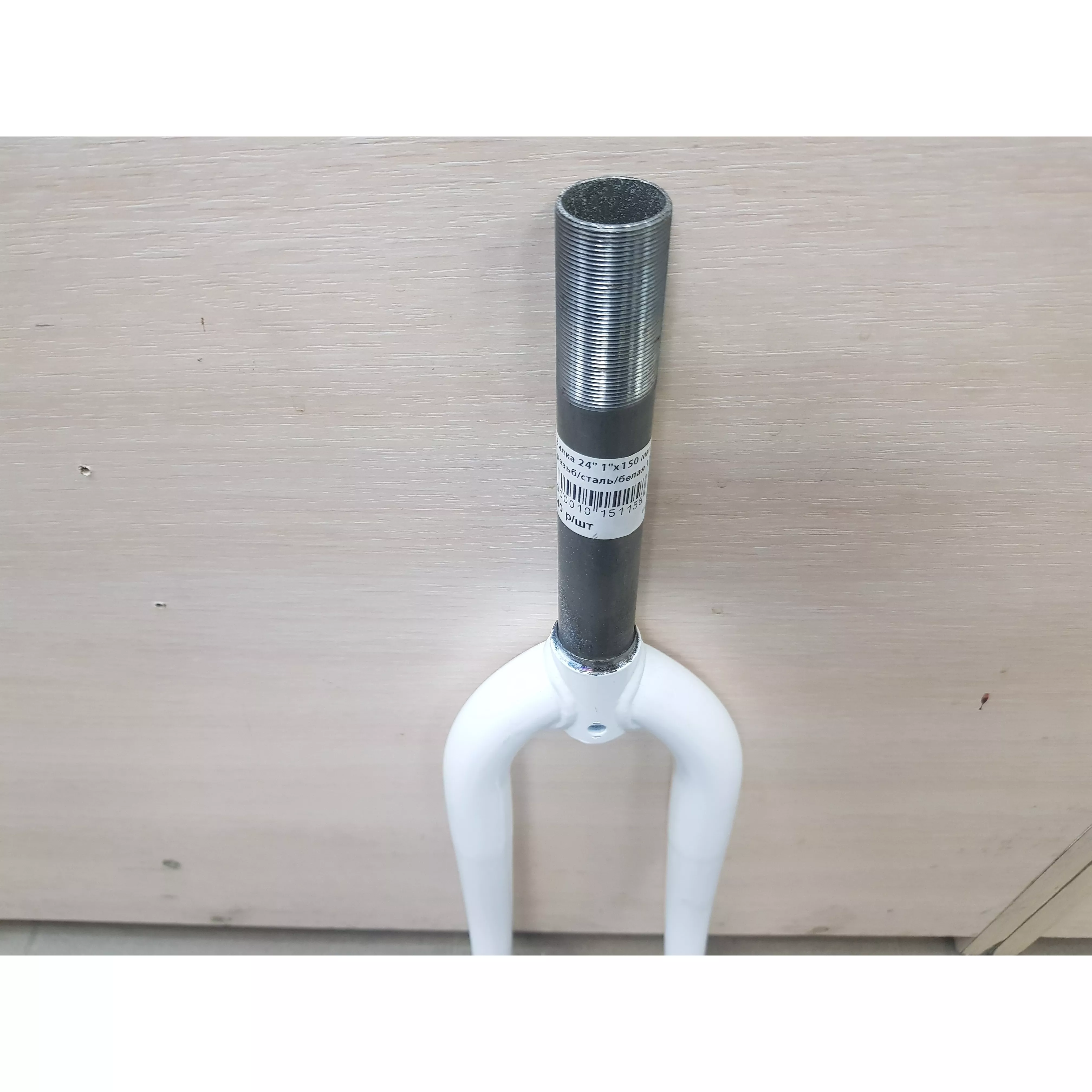 Вилка передняя 24", рулевой шток 1"х150 мм для резьбовой рулевой колонки, жёсткая стальная, белая, под ось втулки 3/8"