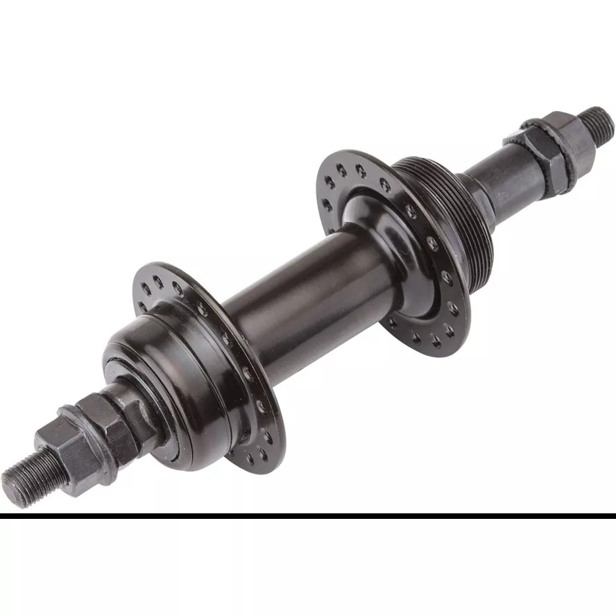 Втулка задняя MY-319R под трещотку, на гайках, 5-7 скоростей, под ободной тормоз или дисковый(с адаптером) стальная чёрная.