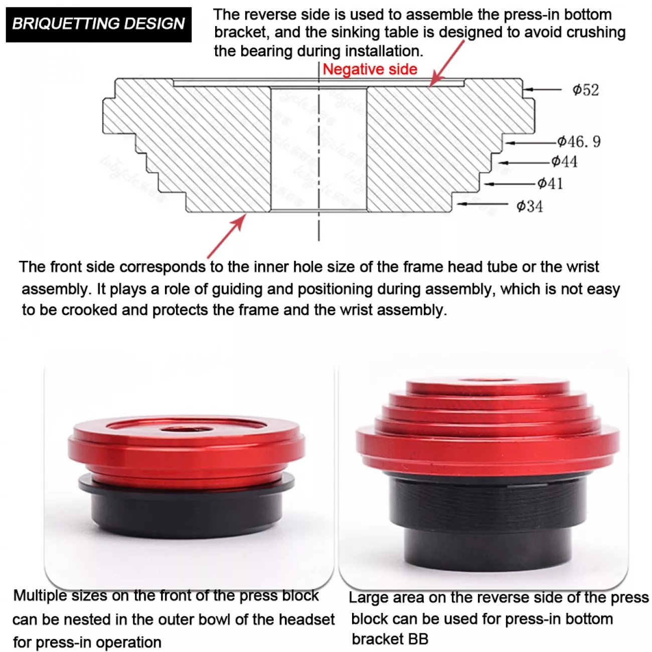 | Область применения | Запрессовка чашек рулевой, чашек кареток, подшипников (при наличии опровок и внутреннем диаметре подшипника не менее 12 мм) |